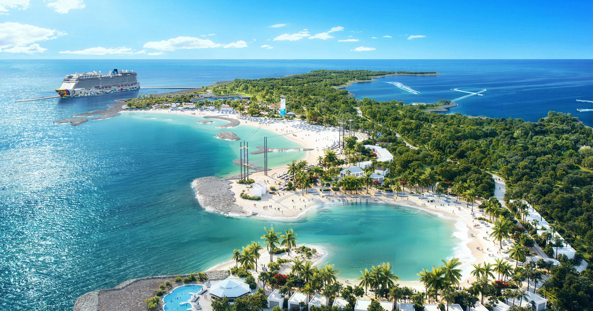 Norwegian Cruise Line's private island getaway is set to debut a range of new amenities and experiences to elevate guest experience, including an expansive pool area with a dedicated bar and kids splash pad, a new welcome centre, and a relaxation zone. These fresh upgrades will coincide with the completion of the state-of-the-art pier, plus efficient tram services – offering an easy and convenient access from ship to sand! Guests can also look forward to the signature NCL onboard experiences coming to life at Great Stirrup Cay, such as the adults-only Vibe Beach club and the all-new Horizon Park. Stay tuned for all these and more, coming at the end of 2025!